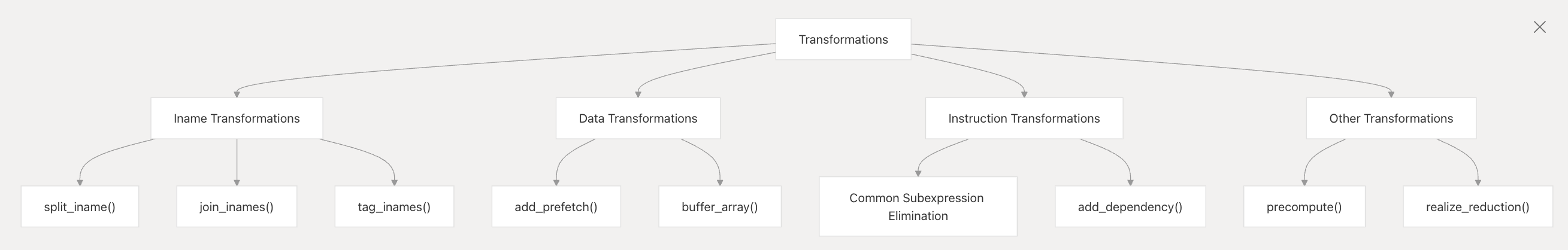 优化实际上是通过各类变换来达到的,这可以说是loopy。为此,loopy的核心代码中存在一个transformation系统,kernel被传递进管道系统中,经过一层层的优化,变成了最终被完整优化的kernel代码。