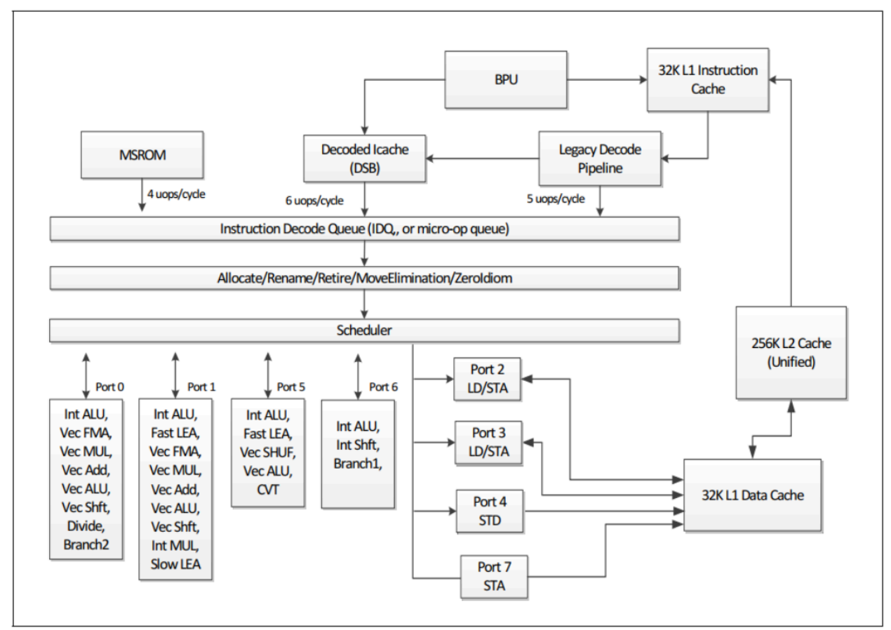 五级流水线(取指IF、译码ID、执行EXE、访存MEM、写回WB)是一个经典的用于理解cpu的理论模型,在一个理想的五级流水线中,当流水线“满载”时,它可以在同一时刻处理五条处于不同执行阶段的指令 。这本身就是一种并行(ILP,指令级并行)。 但事实上,现代 CPU 并不是每个时钟周期只取一条指令,而是可以同时取指、译码、执行多条指令。例如,Intel Skylake核心就是一个8-way(8路)超标量后端。这意味着它不仅仅是5级流水线,更像是多条并行的流水线。